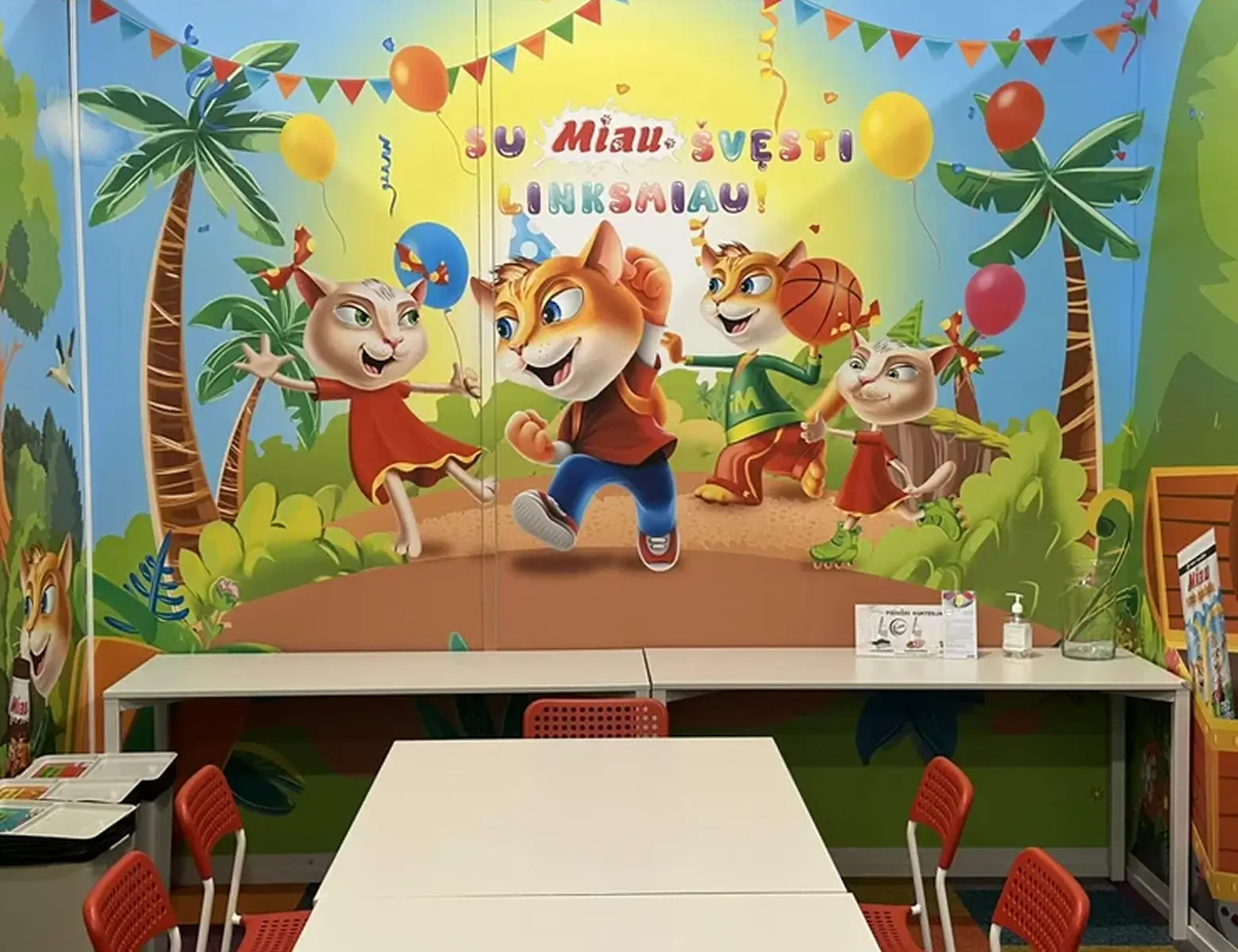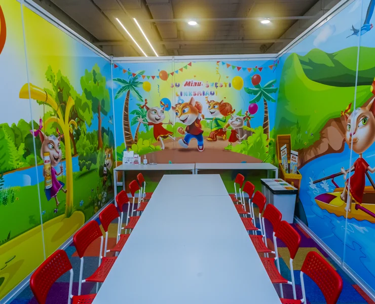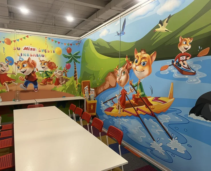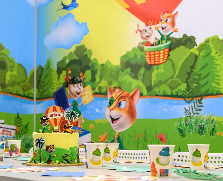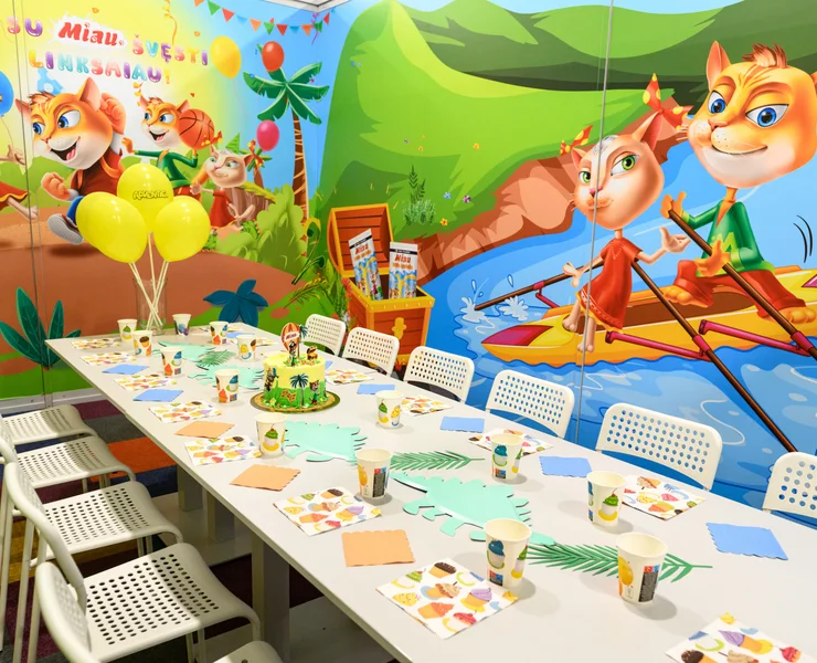 Šiame kambaryje – tikri nuotykiai su Miau herojais! Oro balionai, piratų žemėlapiai, šėlstanti upė ir begalė linksmų žaidimų. Kas ieško lobio, kas plaukia baidare, o kas jau laukia torto – viskas čia juda, žaidžia ir kviečia švęsti. Kambarys kupinas spalvų, gyvumo ir šventinės nuotaikos – kaip tik mažiems smalsuoliams ir jų geriausiems draugams. Tinka tiek mergaitėms, tiek berniukams – juk linksmybės neturi taisyklių!