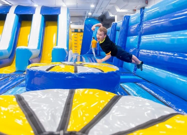 Šokinėjant ir dūkstant ant batuto pastebėsite, kad jame yra milžiniškas kliūčių ruožas, net 4 itin mėgstamos vaikų nusileidimo čiuožyklos, didelė laipiojimo aikštelė, 2 krepšinio stovai bei aktyvus dviejų šeimų judesių žaidimas – „nustumk kliūtis“.